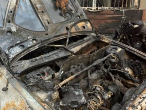 L’incendie a consumé les engins roulants garés là et provoqué d’importants dégâts matériels.