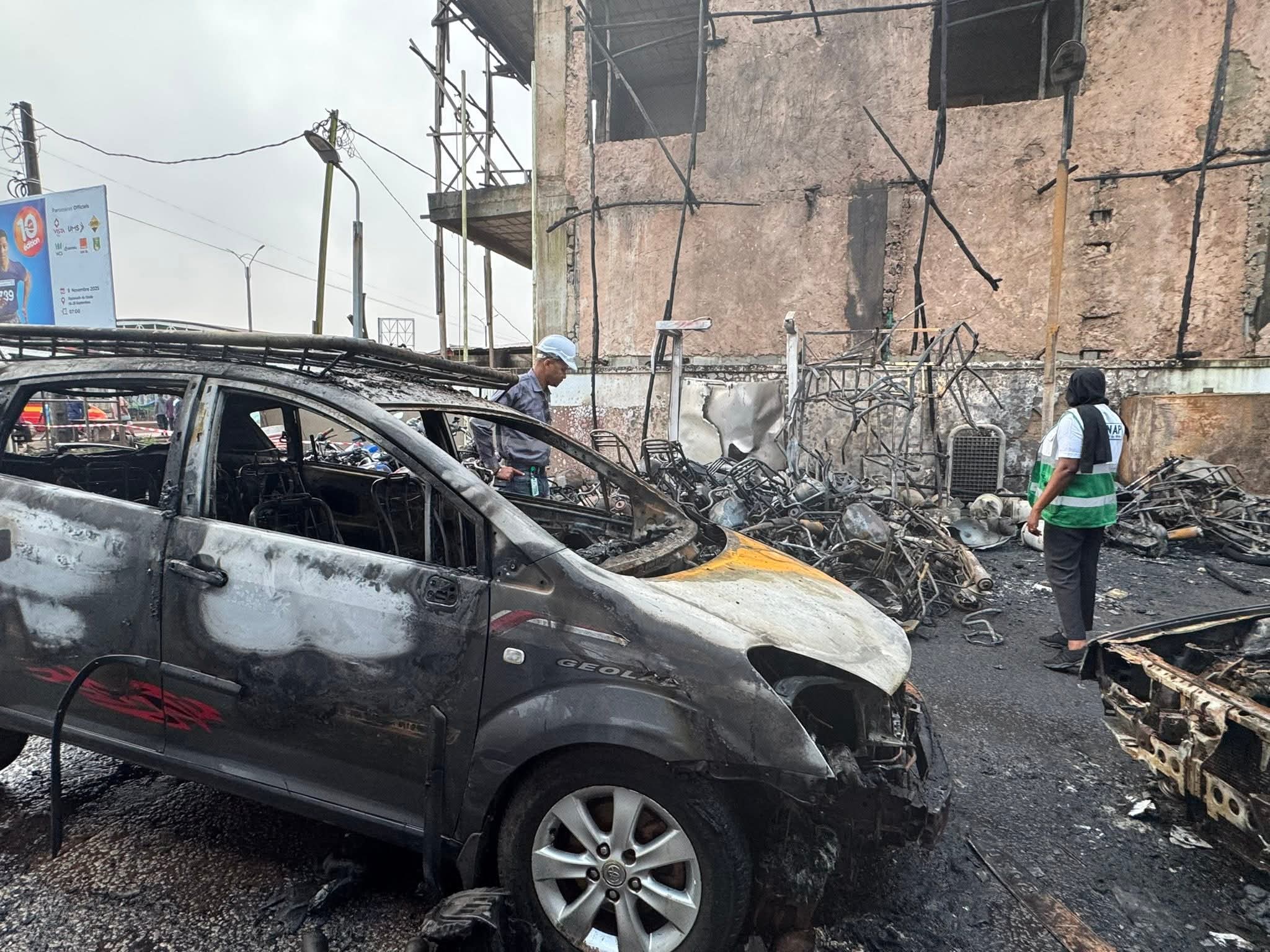 L’incendie a consumé les engins roulants garés là et provoqué d’importants dégâts matériels.