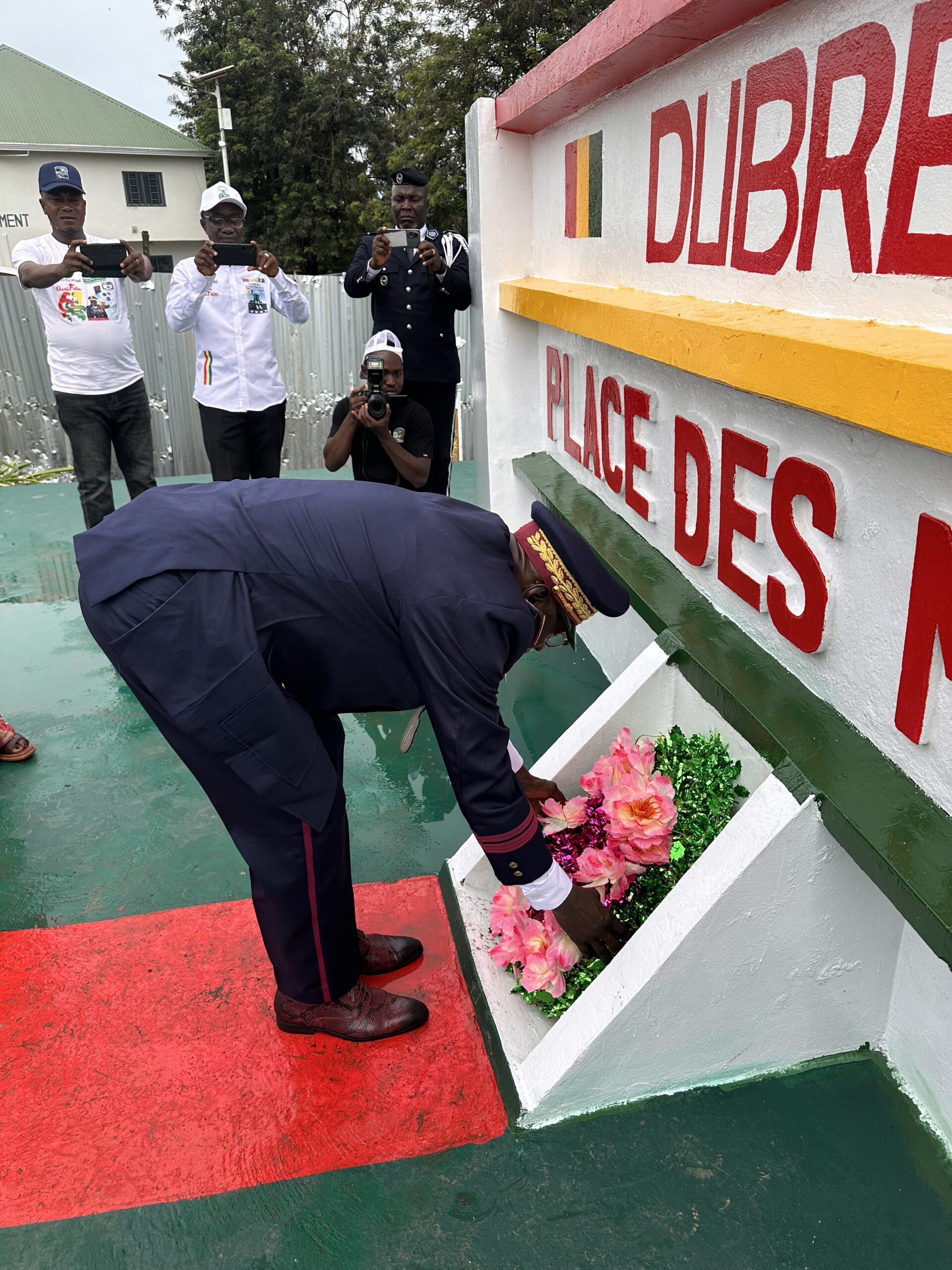 Le préfet Colonel Aboubacar Sidiki Traoré à la pose de la gerbe de fleur à la place des Martyrs en présence d’une bonne frange de la population.