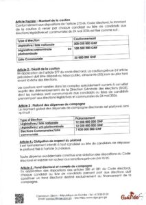 Un peu plus tôt, la DGE (direction Générale des Élections) avait annoncé la caution pour les candidatures et le plafonnement des depenses pour la campagne électorale.