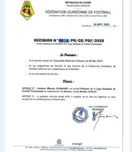 Cette décision est prise par le président de la fédération guinéenne de football Sory Doumbouyah.